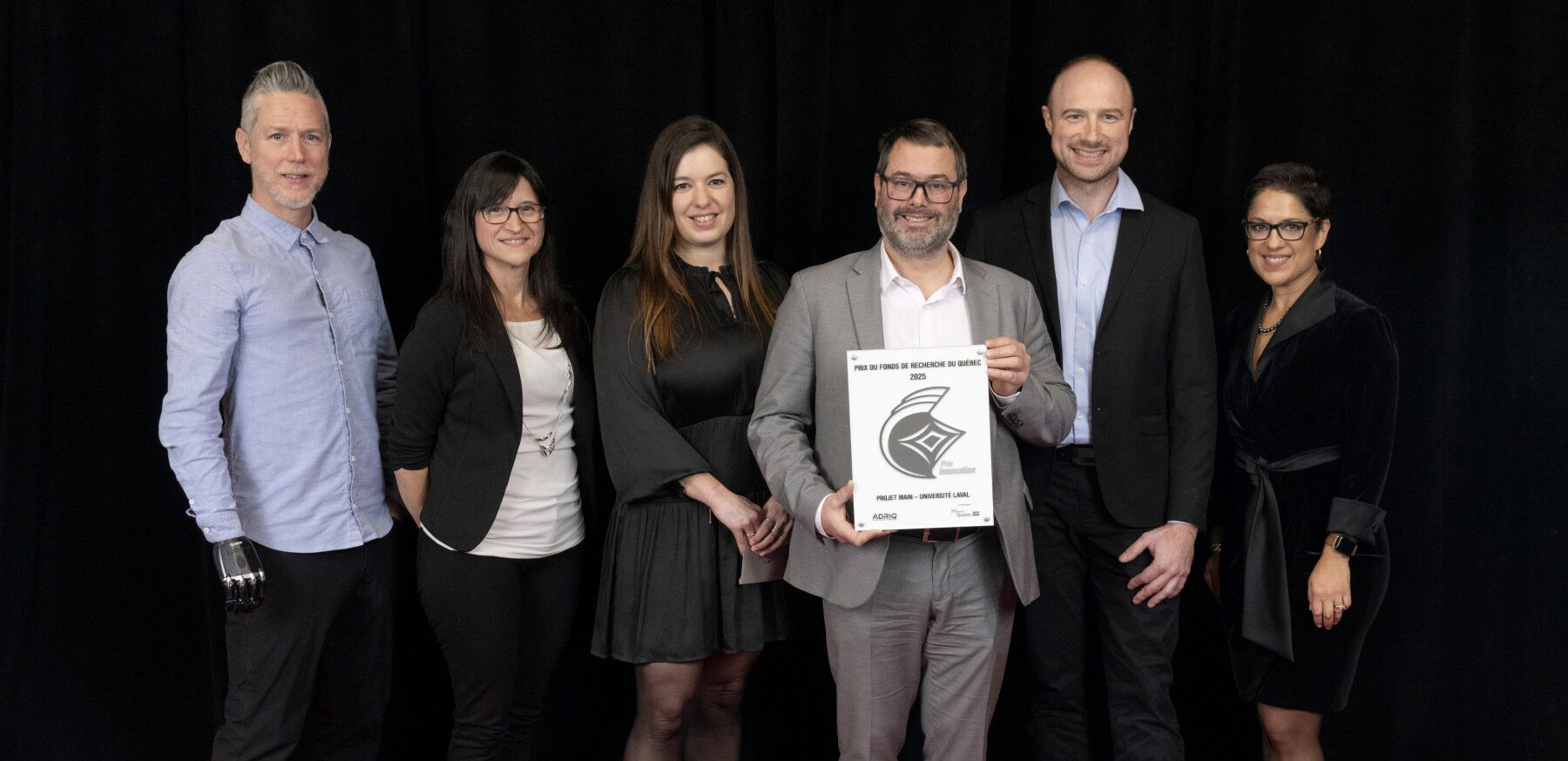 Le Fonds de recherche du Québec tient à féliciter le Projet Main de l’Université Laval, lauréat du Prix du Fonds de recherche du Québec, décerné à l’occasion du 35e Gala des Prix Innovation de l’ADRIQ, le 27 novembre 2025.